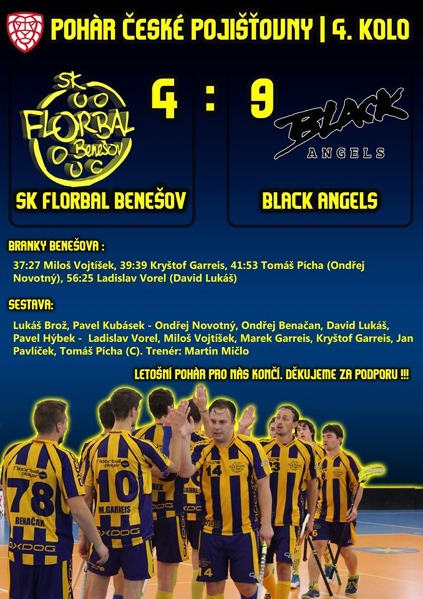 Benešovu se povedlo postoupit do čtvrtého kola poháru. To se odehrálo v úterý 29. 9. od 20:00 na domácí palubovce proti pražskému týmu BLACK ANGELS hrající první ligu.