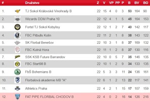 Ostatní výsledky však Benešovu nepřáli a tak naši florbalisté skončili pouhé tři body od play off Národní ligy.