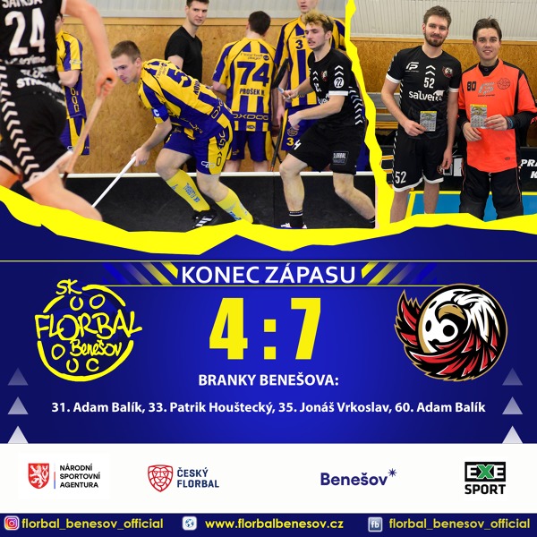 SK Florbal Benešov vs. Fbc Strakonice 4:7 prohra.