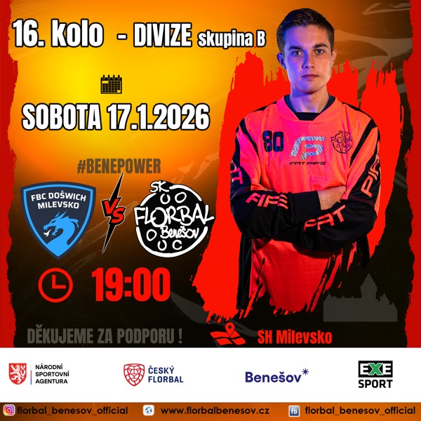 FBC DOŠWICH MILEVSKO vs. SK Florbal Benešov v 19:00 hodin.