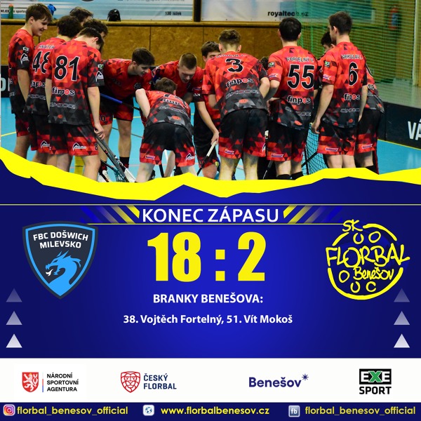 FBC DOŠWICH MILEVSKO vs. SK Florbal Benešov 18:2 prohra.