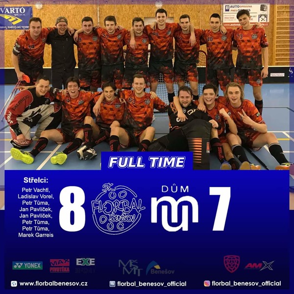 K Florbal Benešov vs. Wizards DDM Praha 10 8:7 (1:2, 4:1, 3:4)